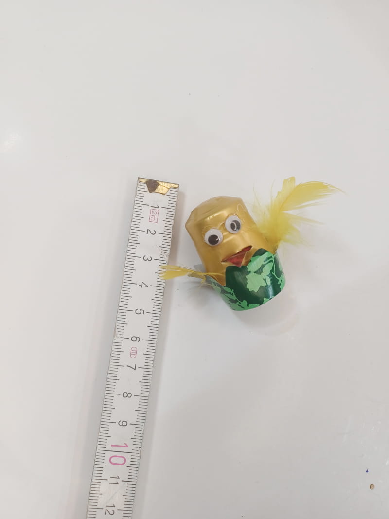 Kücken im grünen Blümchennest mit Federn und Wackelaugen.