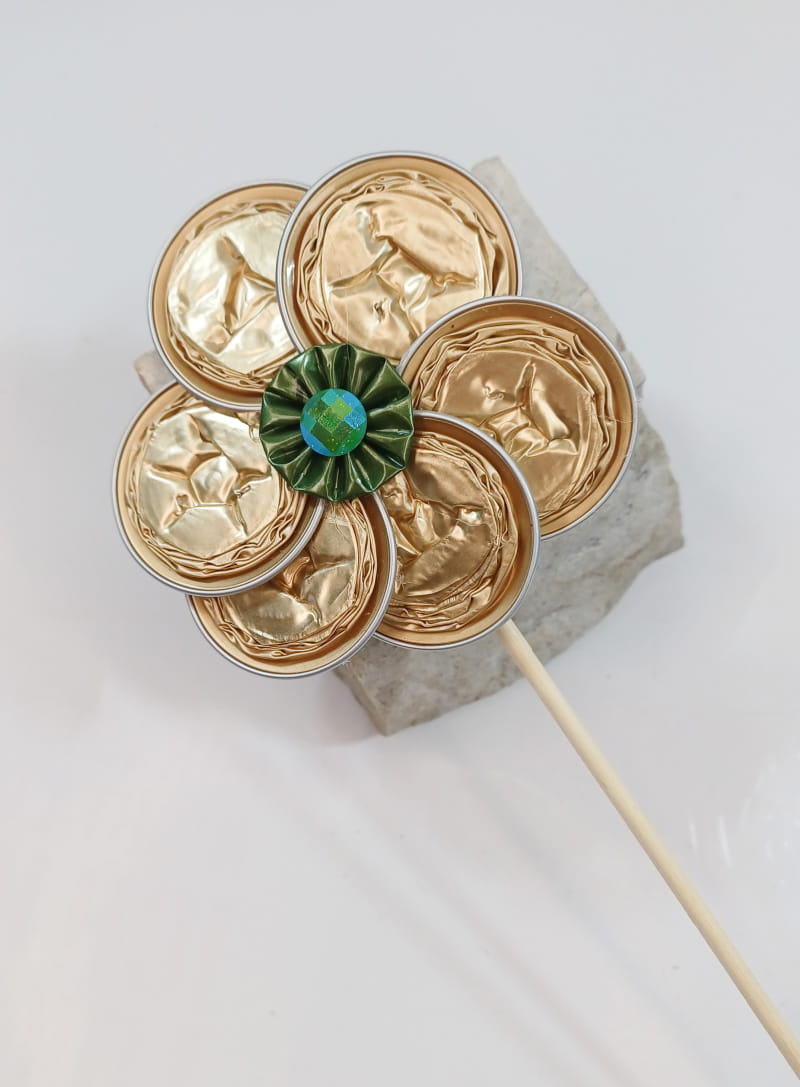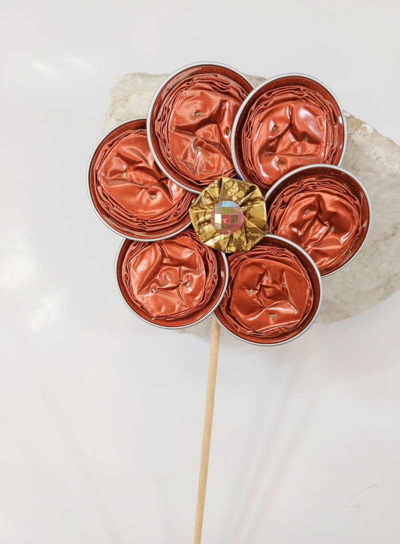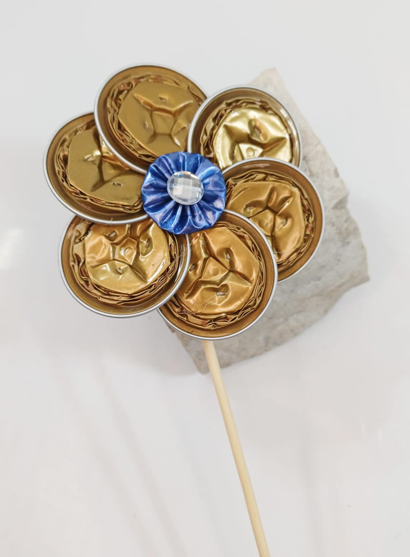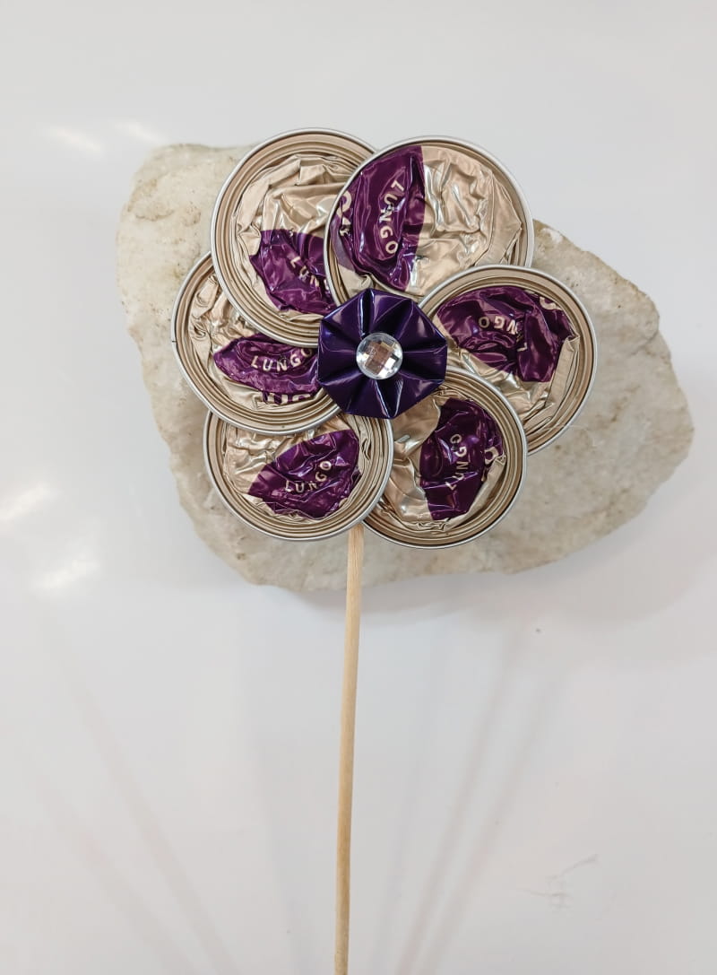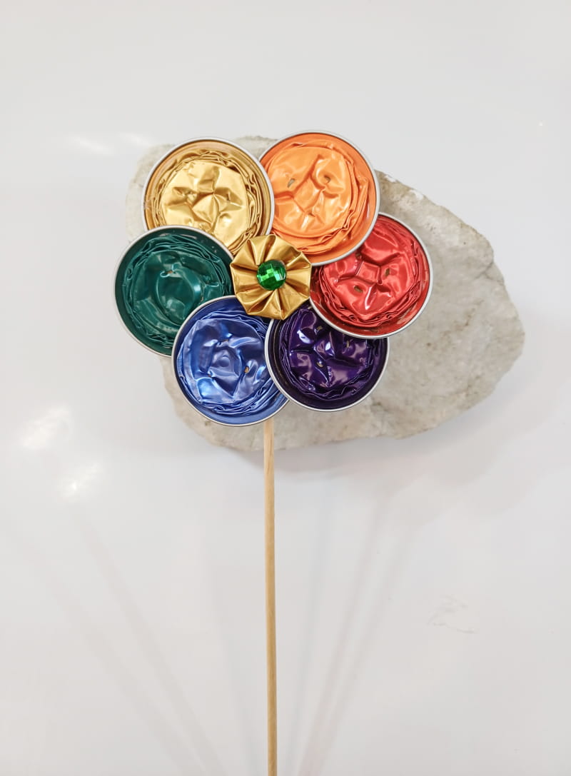Diese zauberhafte Blume aus recycelten Kaffeekapseln ist ein dekorativer Blumenstecker mit besonderem Charme. Liebevoll handgefertigt, setzt sie stilvolle Akzente in Blumentöpfen, Vasen oder Gestecken. Eine nachhaltige Dekoidee, die Kreativität und Umweltbewusstsein vereint.