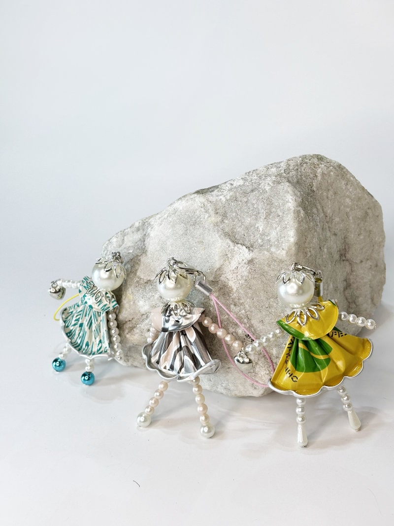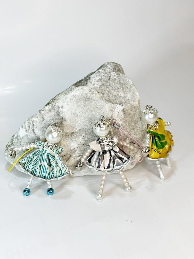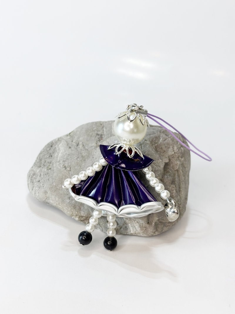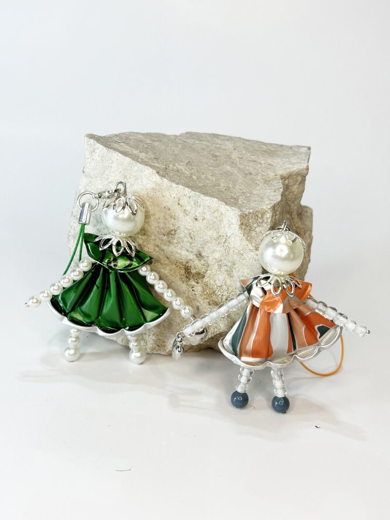 Handgefertigt sorgt das kleine Püppchen für einen nachhaltigen Farbtupfer und zieht garantiert alle Blicke auf sich. Der Karabiner und die Schlaufe machen das Püppchen super praktisch: Hänge es einfach an deine Tasche oder am Rückspiegel deines Autos.